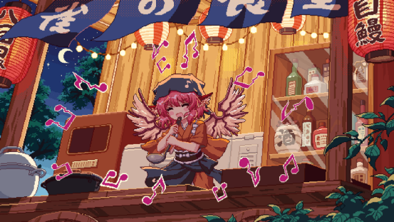 但是,我们今天不需要去打打杀杀,而是去扮演一只喜欢唱歌的小夜雀——米斯蒂娅·萝蕾拉,经历在幻想乡开深夜食堂,为人们的夜晚带来温暖与快乐的小故事。