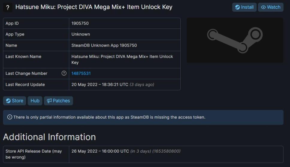 根据网站SteamDB数据显示,《初音未来歌姬计划 MEGA39's(Hatsune Miku: Project Diva Mega39’s)》预计会在5月26日登陆Steam平台。