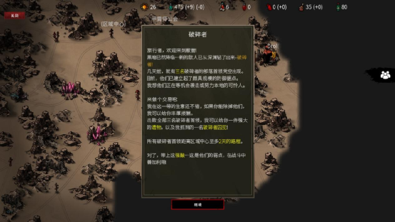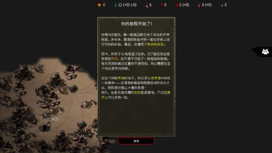 逃出监狱,映入眼帘的就是一片战争迷雾,以及一个个木桩。玩家每回合都可以移动到相邻的木桩,并且驱散战争迷雾,获得永久视野。游戏剧情薄弱,连带着主线也十分简单——找解药。不断探索地图,才能得到下一步的消息。
