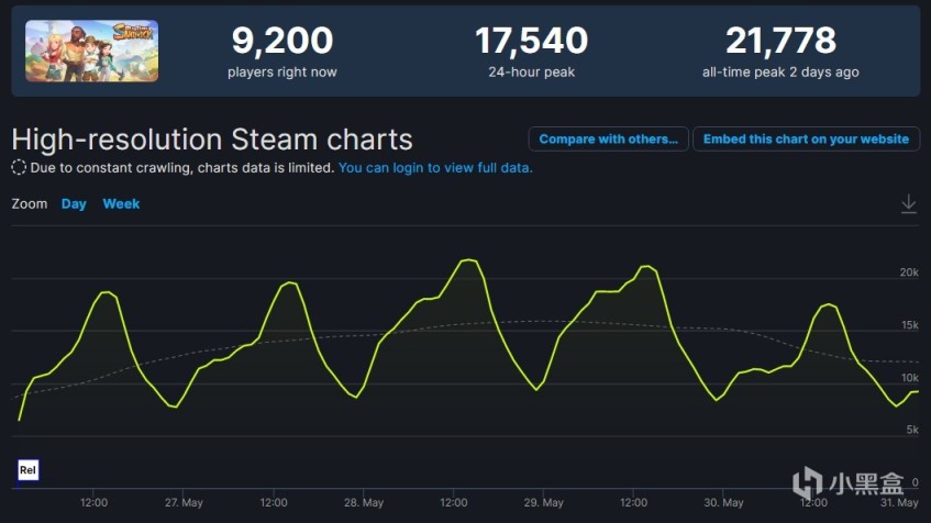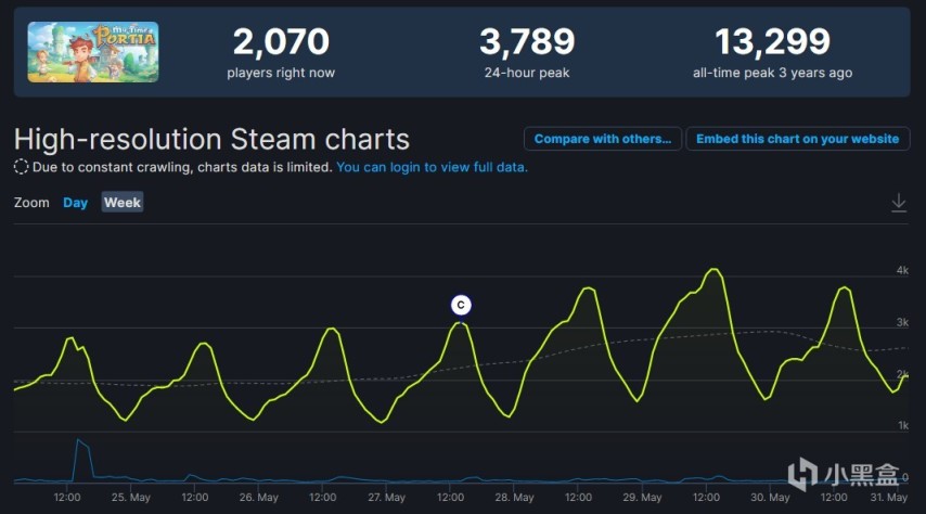 据SteamDB显示《沙石镇时光》Steam在线峰值为21778人,比起前作《波西亚时光》增加了约64%,实际可能更多,另外游戏还登陆了Epic和WeGame平台。《波西亚时光》累计的口碑起到了很大作用,让续作《沙石镇时光》备受玩家期待。