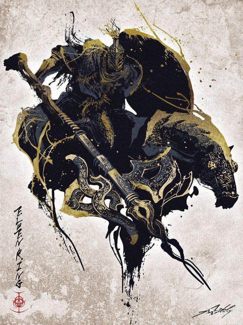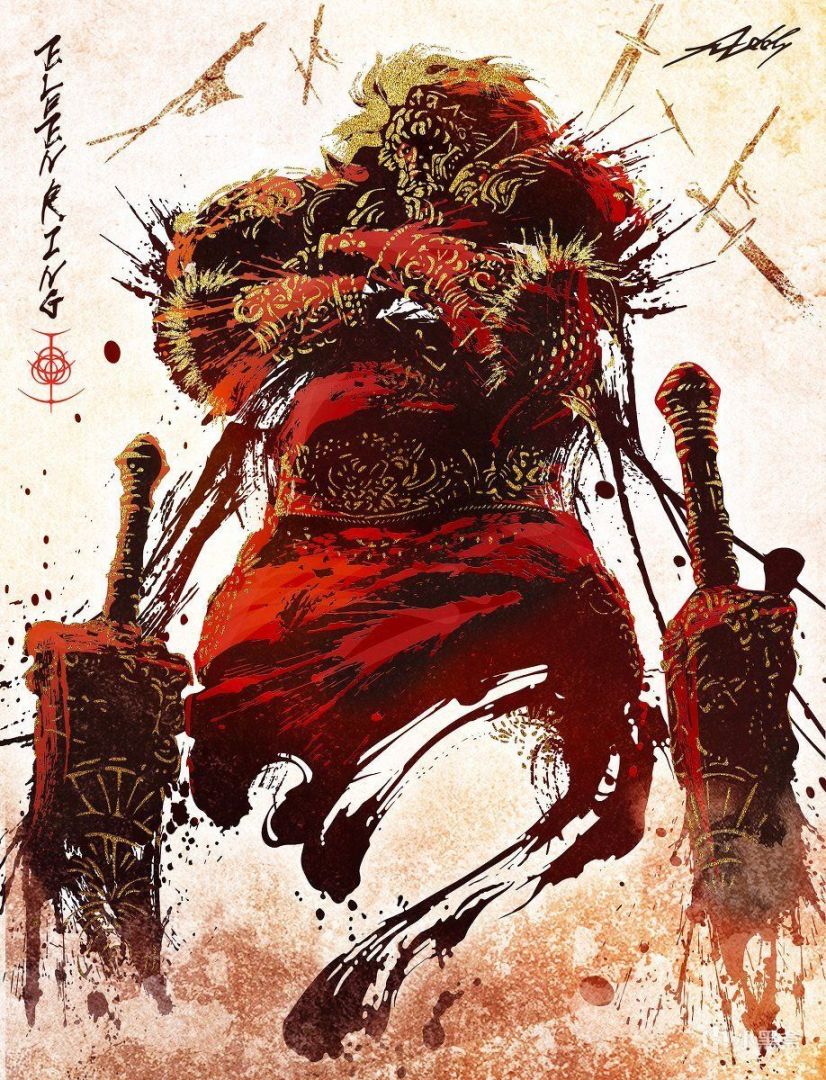 国外画师分享《艾尔登法环》水墨画风同人作品