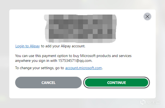 第七步:打开支付宝,扫二维码,绑定微软免密支付,成功后回去支付10港币约8块钱。