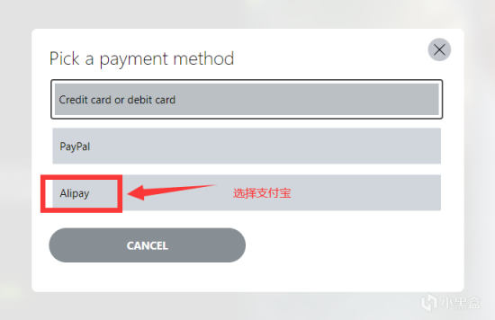 第五步:选择第三个支付方式,支付宝。这也是为什么选择港服的原因,因为支持支付宝