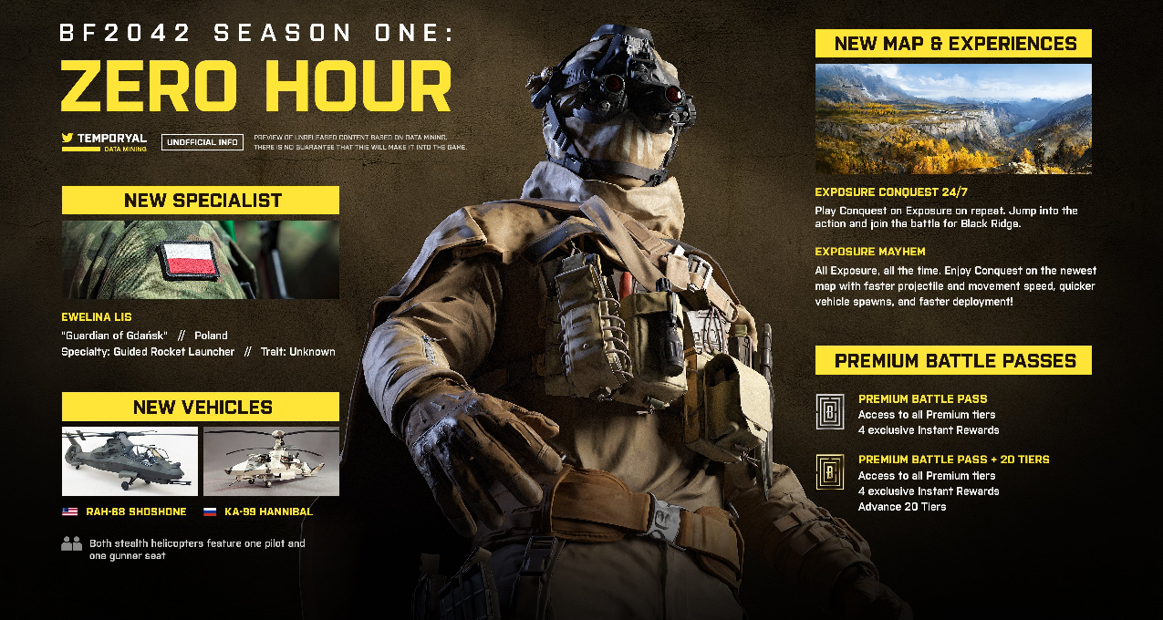 知名舅舅党Tom Henderson爆料《战地2042》第一赛季将于6月9日上线,第一赛季的预告片有望在明日发布,共包括第一赛季揭露预告,新专家角色Ewelina Lis的预告和战斗通行证预告三个预告。