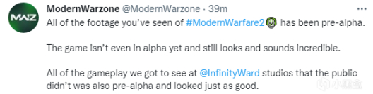 根据多位曾参加过提前放映的博主(提早一周去了IW工作室位于洛杉矶的总部观看)表示,目前公布的所有视频,包括全球揭露预告和战役模式实机演示,都是早期预览版本(pre-alpha)。