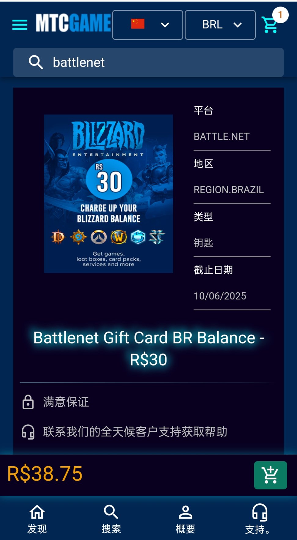 充值方式:首先使用魔法注册一个巴西区账号,推荐使用小黑盒加速器,再前往某些国外的礼品卡网站,这些网站支持国内的银联visa和万事达,并且都是战网的礼品卡供应商,不存在黑卡风险,购买完成后兑换即可。