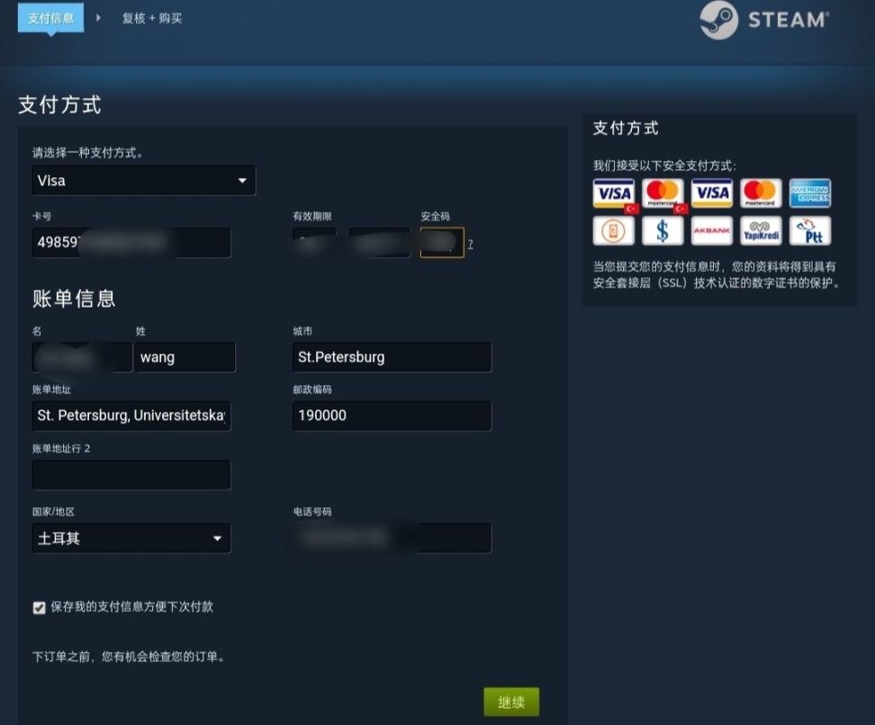 准备一张土耳其当地的visa或者万事达,与银联步骤一样,填写卡号安全码即可消费,这里用的是我去年旅游时候办的是土耳其实业银行的visa,如果你是其他区的话,在这比消费完成之后就直接转区到土耳其了。