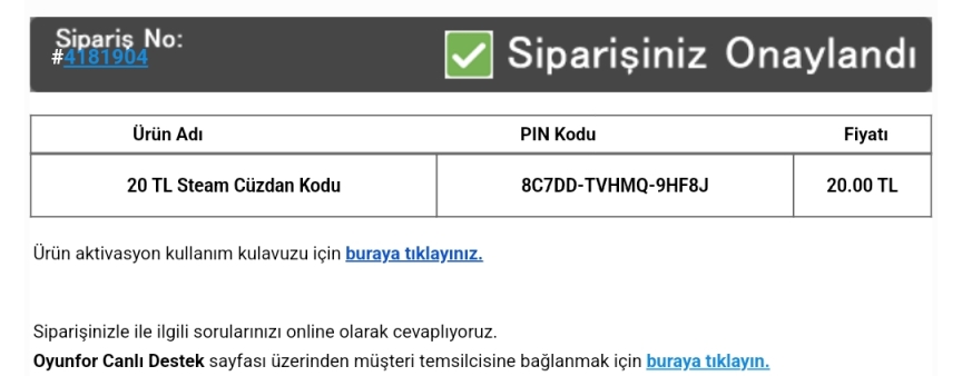 附上部分土区正规充值卡购买订单示例