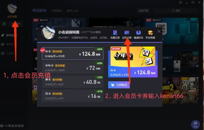 如果大家缺少短期加速器的话,可以在小黑盒加速器中输入会员兑换码kenan66,即可得三天加速时长可以累加会员码,每个月白嫖黑盒一次哦。