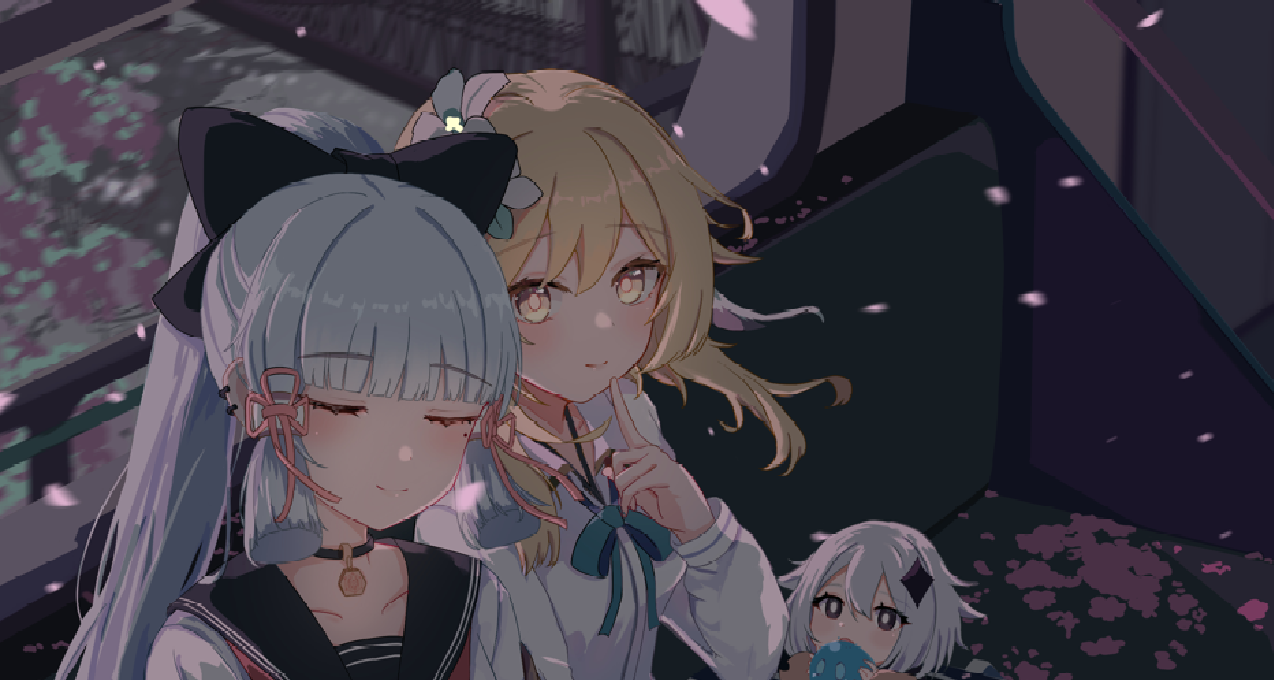 最后细画下背景画个滤镜,一副简单绫华和荧贴贴图就画好了。