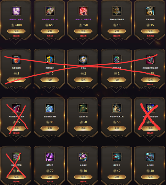 6月剩下2周的传奇硬币兑换列表如下,请各位自行根据需要考虑硬币获取。