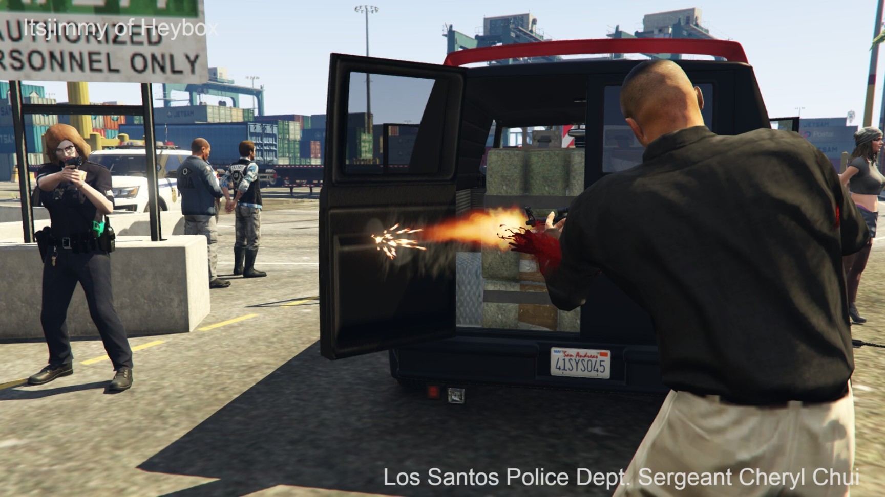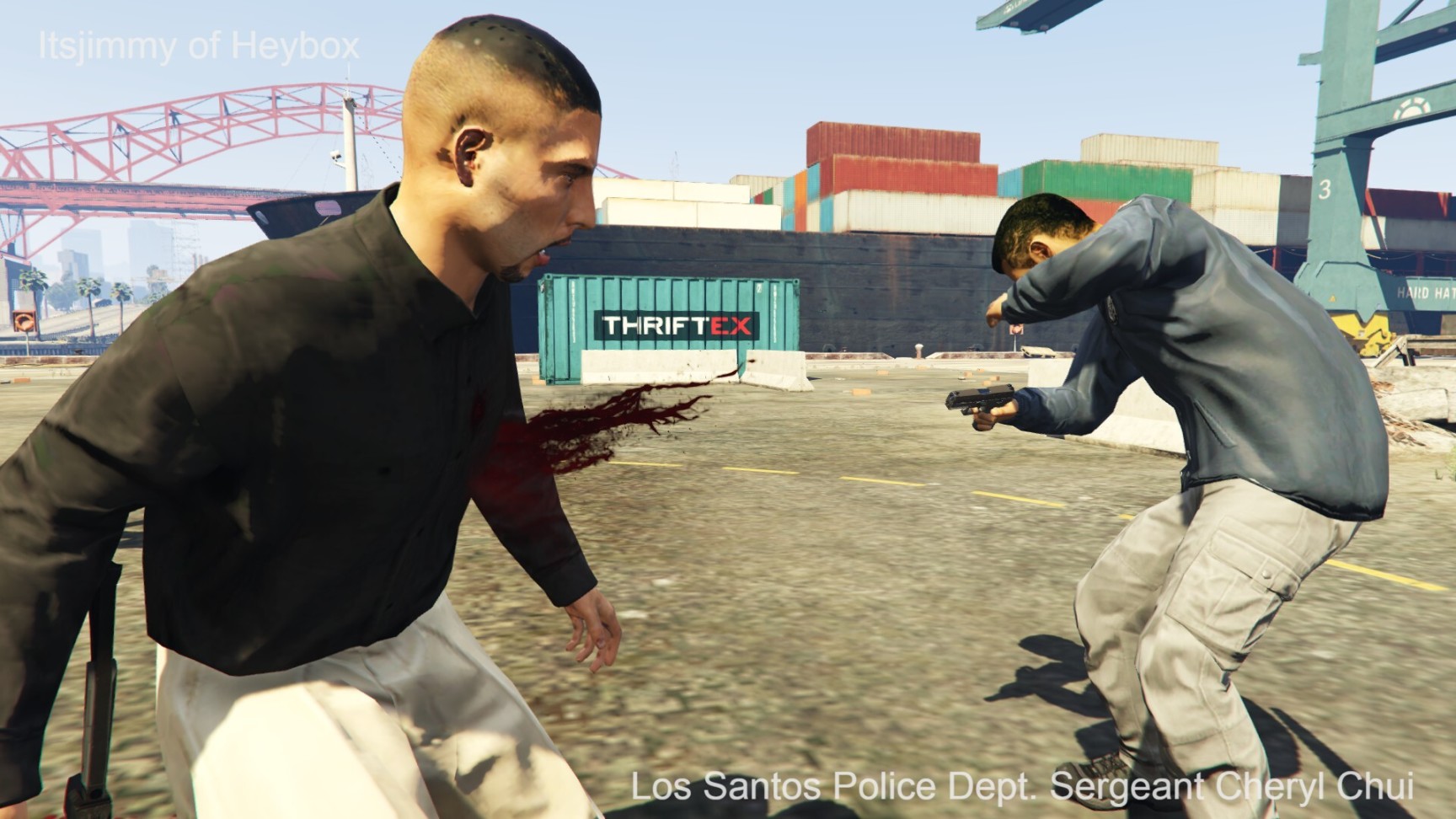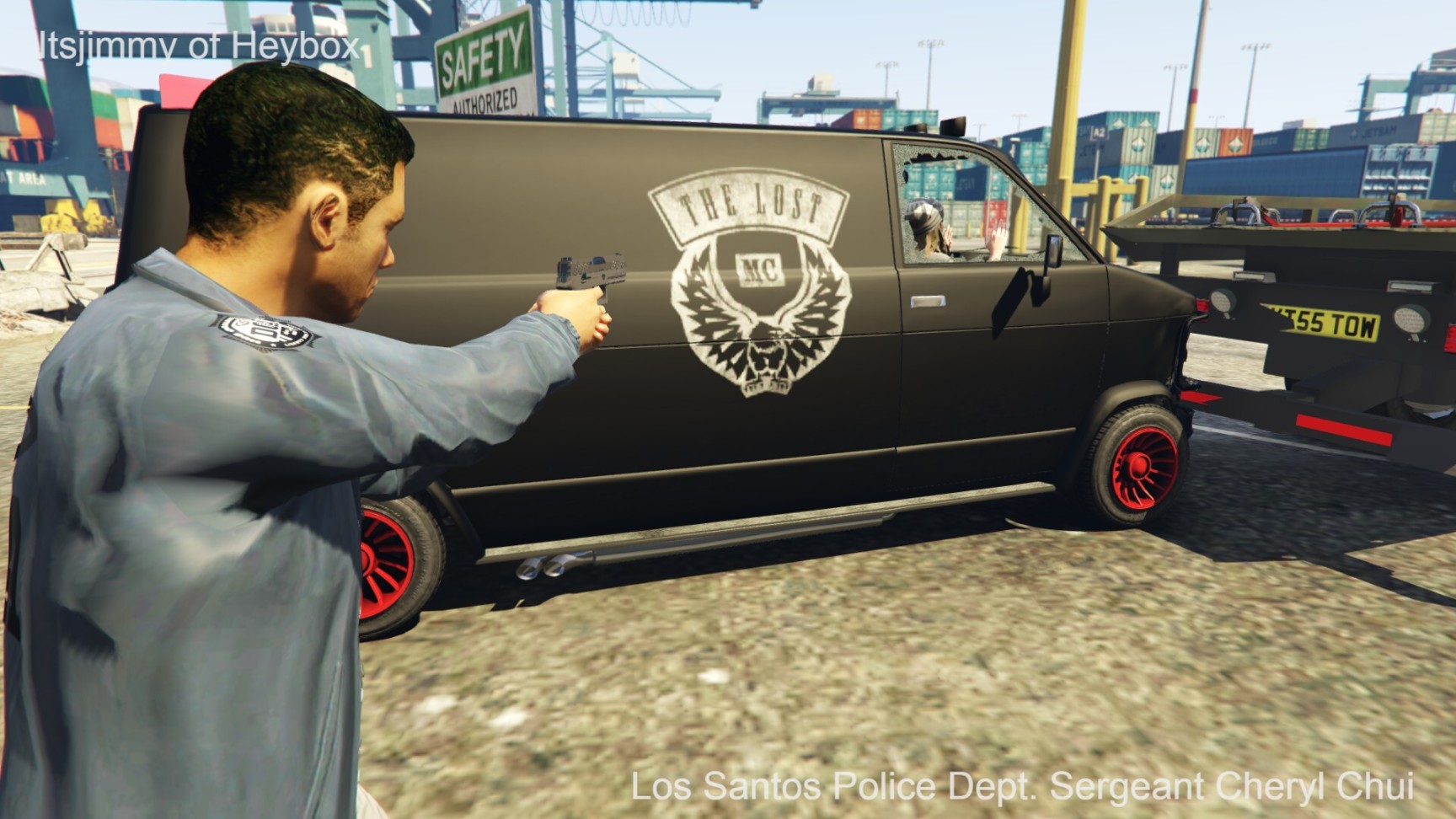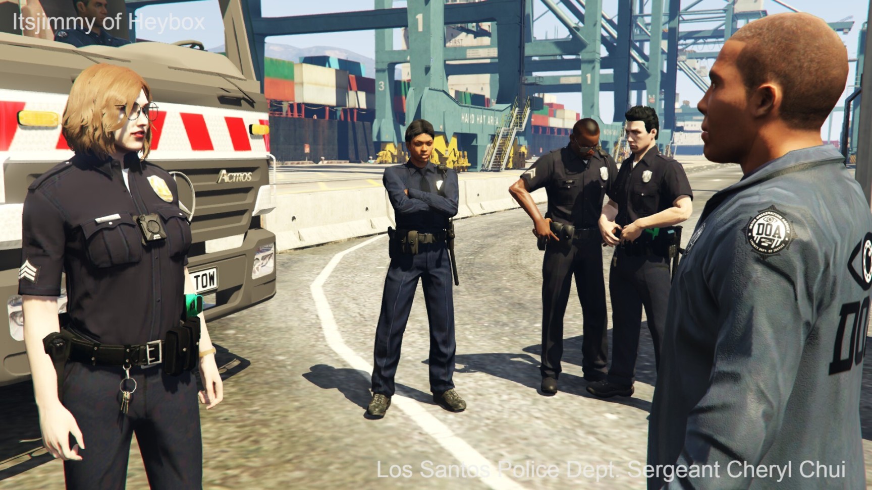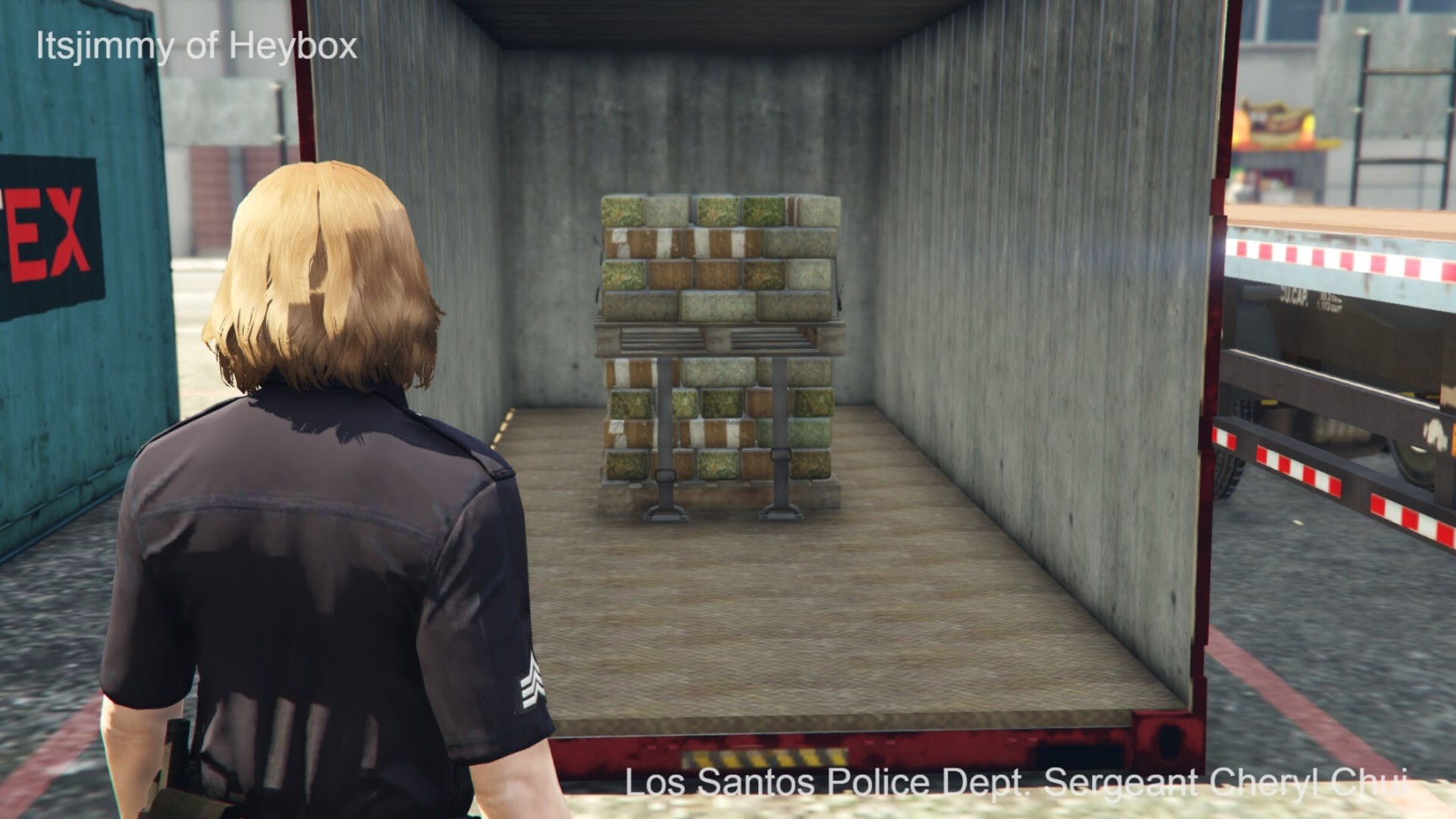 众喽啰得令,数辆失落摩托帮的箱车和摩托车开始朝DOA的卡车位置快速靠近. 洛圣都货运港口错综复杂的道路和高高堆起的集装箱为他们提供了绝佳的掩护.