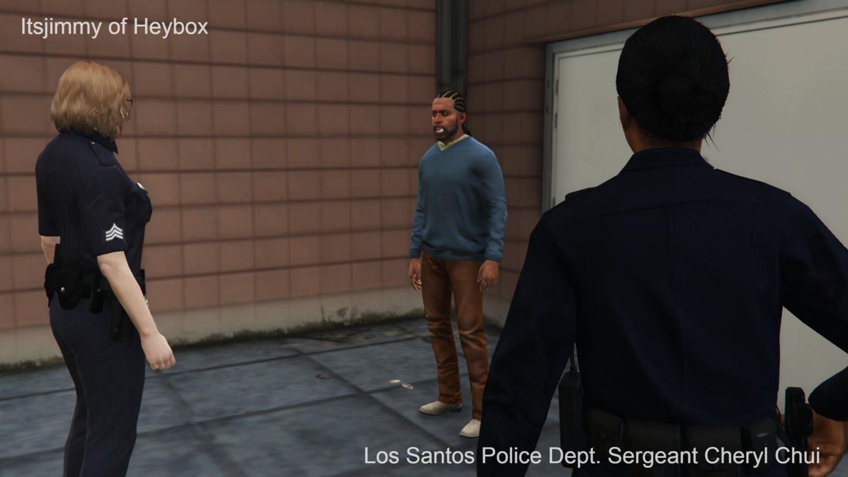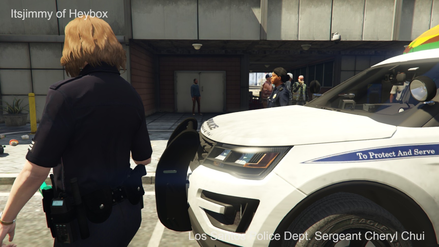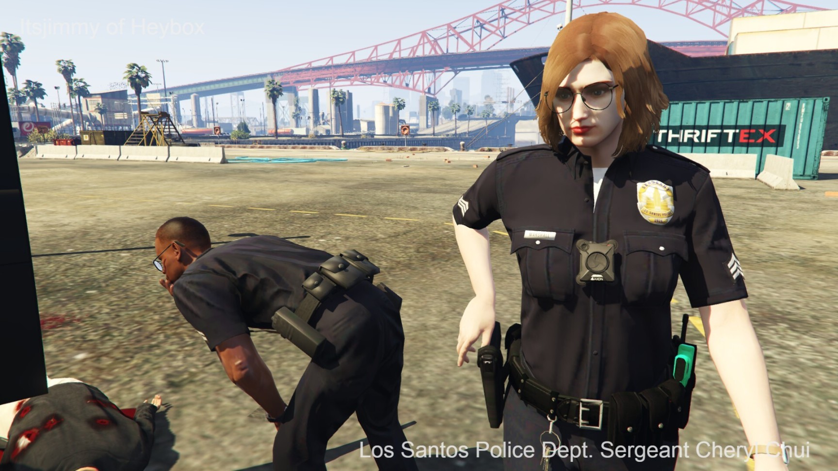 欧莉娅警员和卡尔德隆探员也跳下了车,和赶来增援的警员一起把失落摩托帮的喽啰们围了个里三层、外三层. 一时间,警员们手中的UPR[Urban Police Rifle,是LSPD为符合资质的警员配发的警用步枪]拉栓声音响成一片.