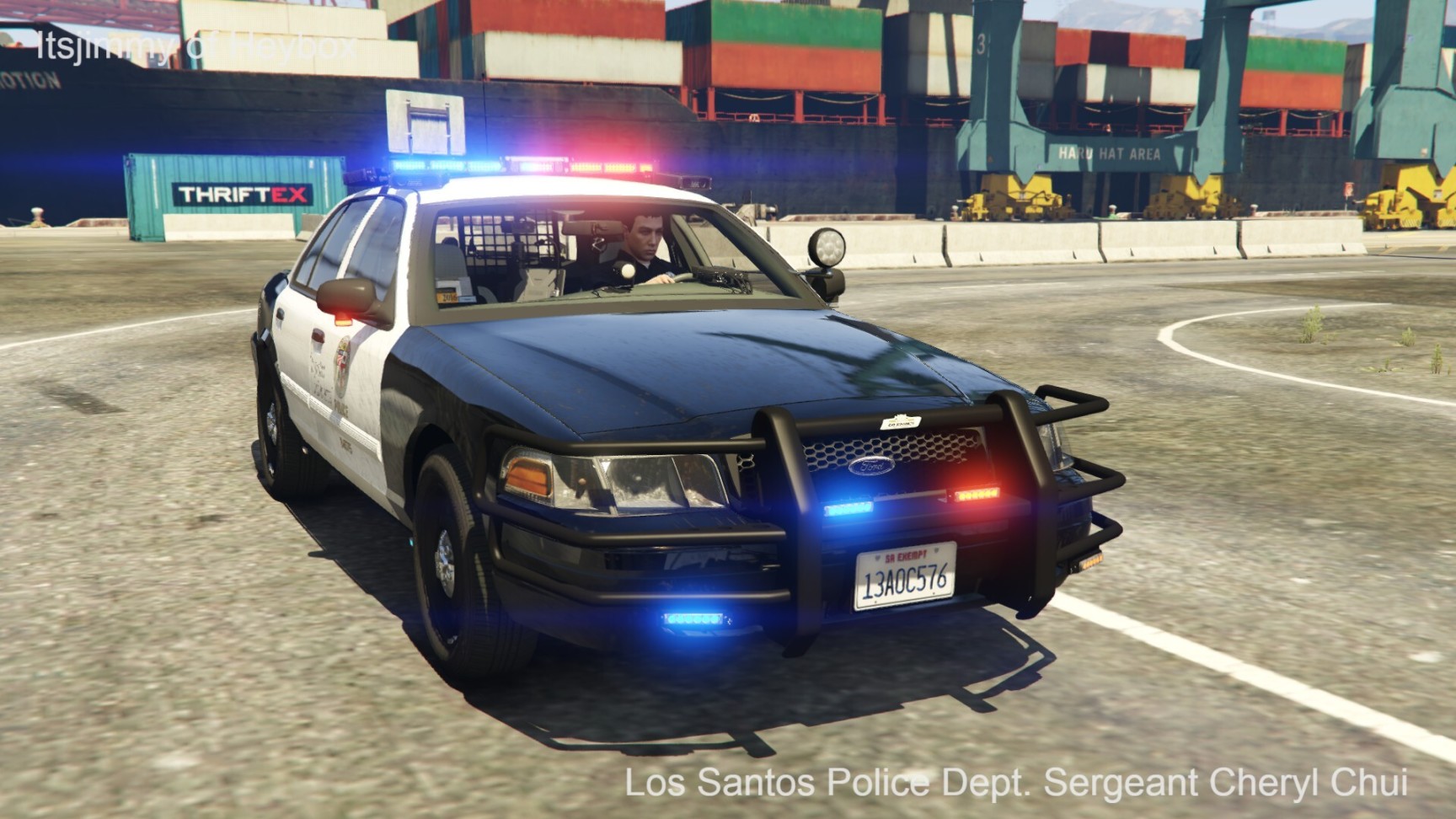 警车沿着洛圣都货港的栈桥开进了卸货区. 谢罗尔一路把警车开到港口主楼底下.