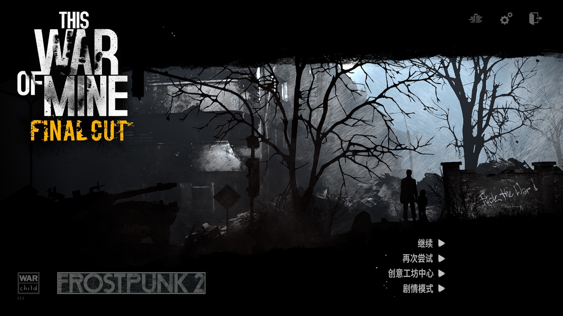 主界面墙壁上更是直接放了一句“**** the War”。这是深陷战争泥沼的人们的愿望,也是游戏主题的体现。
