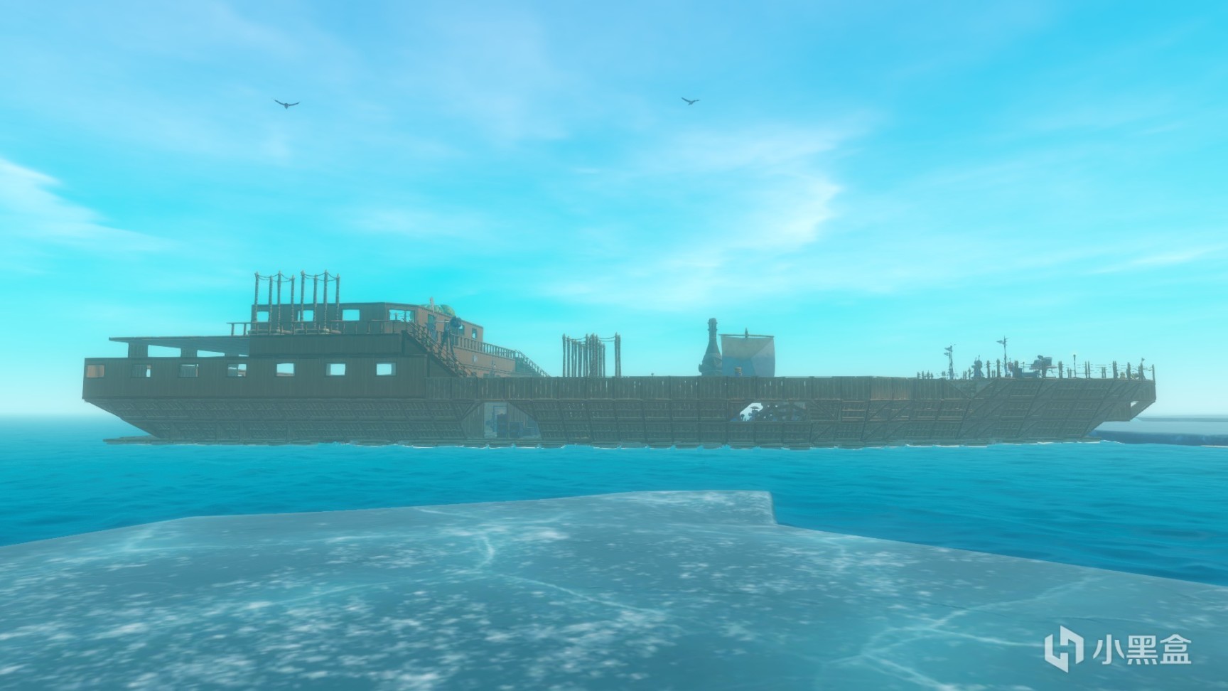 最后给大伙看看我们的船,目前由于太缺木头导致进度缓慢还未完工,不过早晚会有建成的一天,毕竟我们是海上造船师(垃圾佬)
