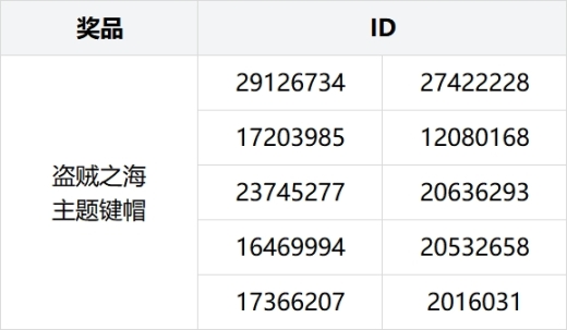 参与奖:盗贼之海主题键帽*10