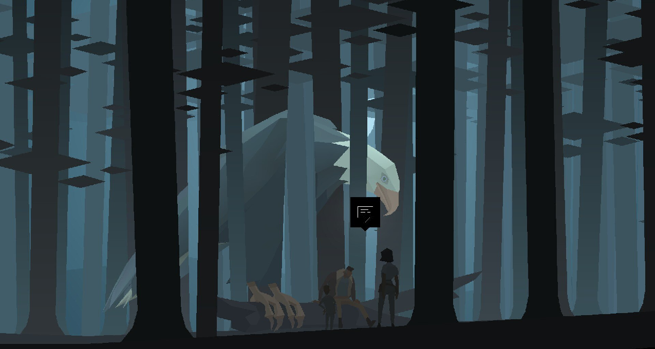 游戏通过很多方式,大量对白问了很多上述这种问题:这个画面感知是不是真实的?这个场景是不是真实的?答案没有对错之分。KRZ中的虚实场景采用了很多视差的技巧——更完整的故事和画面可以通过不同视角来体验。比如说有个场景里,一个小男孩穿过森林,视差的滚动效果创造出了一种立体感的幻觉,背景画面比靠近观众的画面移动地更慢。René Magritte的断裂图像被用来填补画面,让大脑把不真实变成真实。