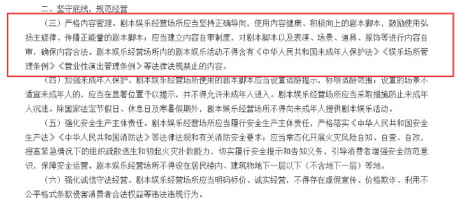 昨日,文化和旅游部,公安部, 住房和城乡建设部,应急管理部,市场监管总局等部门联合发布了《关于加强剧本娱乐经营场所管理的通知》,明确了剧本杀行业大大小小的规范。