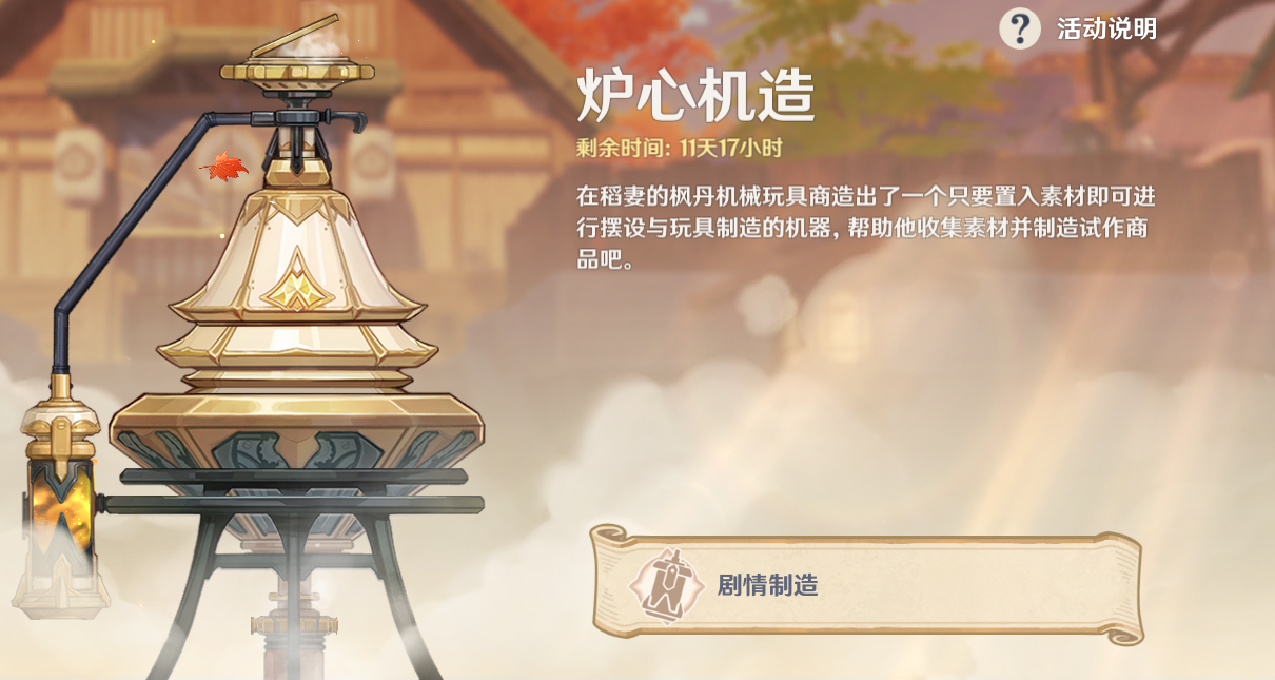 在完成活动开启任务后,与稻妻城的凯瑟琳对话后,找到离岛附近的伯特兰,参与「炉心机造]活动后