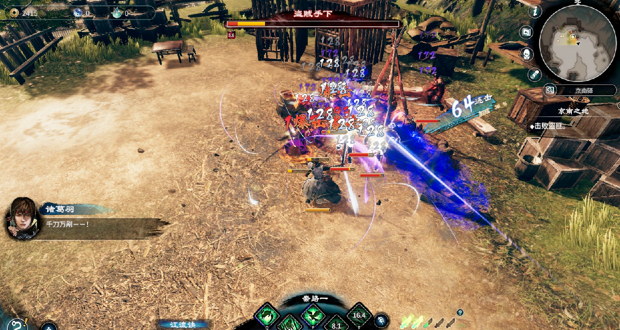 变强了能干嘛呢?当然是打BOSS了!战斗的玩法同样是本作的重点,毕竟这也是一款武侠题材的游戏嘛。和多数动作类游戏的设定类似,本作的战斗形式为即时制,上帝视角的操作方式,通过平A和技能与各种小怪和BOSS战斗。角色可以通过做各种主线和支线任务来进行养成,从而提升技能的战斗力,养成的过程很有成长感和成就感。战斗之前选好自己顺手的技能套路,战斗过程中做好走位以及在适当的时候释放技能,玩玩普通或者简单难度还是问题不大的,上手难度比较友好,剧情党基本上不必担心战斗玩法带来的卡关问题,当然大手子们也可以通过选择高难度来挑战自己的操作能力。角色的养成方面对战斗力的影响是比较显著的,无论是主角的加点还是技能的修炼(武学、心法、八卦等多个属性养成系统),都需要玩家有一个较为明确的培养方向,比如我是要追求高伤害秒人速战速决、还是追求高生存能力稳扎稳打磨死BOSS,哪种战斗风格更适合那就选择哪种养成路线。属性加点的方向还是很丰富的,就算是“平A流”都有属于自己的加点方向,有一种在ARPG里面构筑BUILD的感觉了。