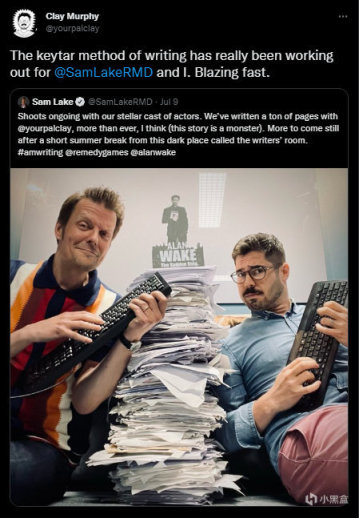 近日,《心灵杀手》的系列主创Sam Lake在推特发文表示,《心灵杀手2》将是其参与过最大的项目,拥有着远超前作的故事量,并附带一张和另一位编剧Clay Murphy的合照,从照片中能看见堆积如山般的稿子。