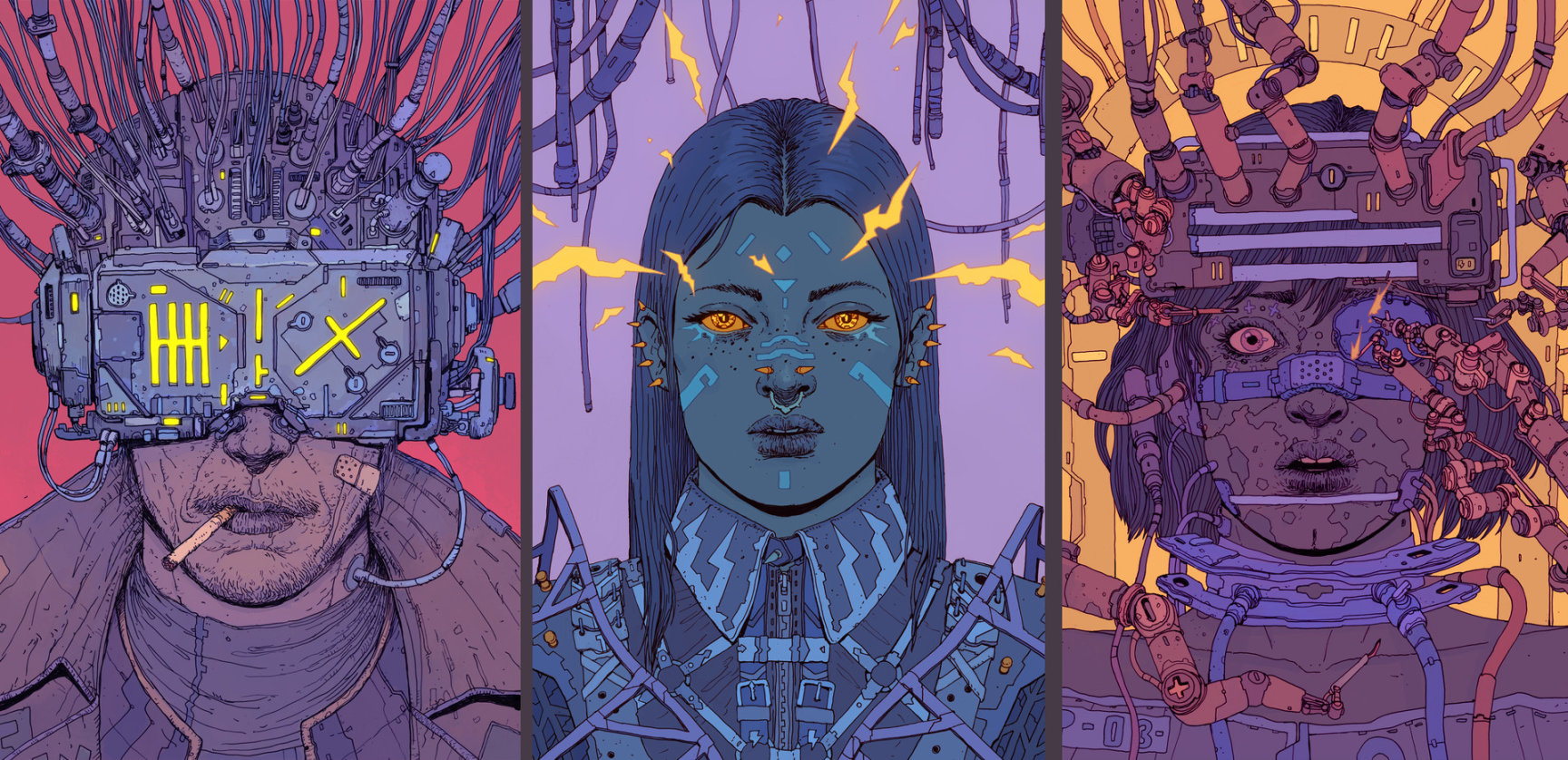 结合赛博朋克“high tech,low life”的核心,霓虹渐变同样也渲染了一种繁华生活下的寂寥和冷漠,用来表现赛博朋克是在恰当不过了的。