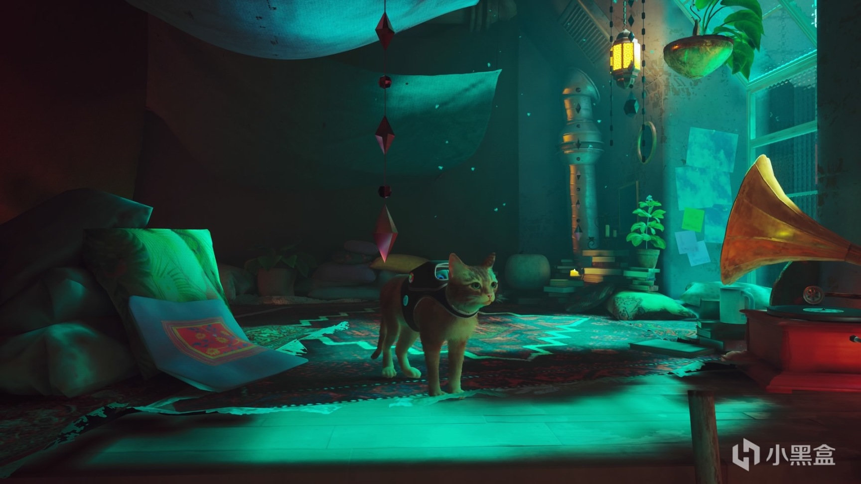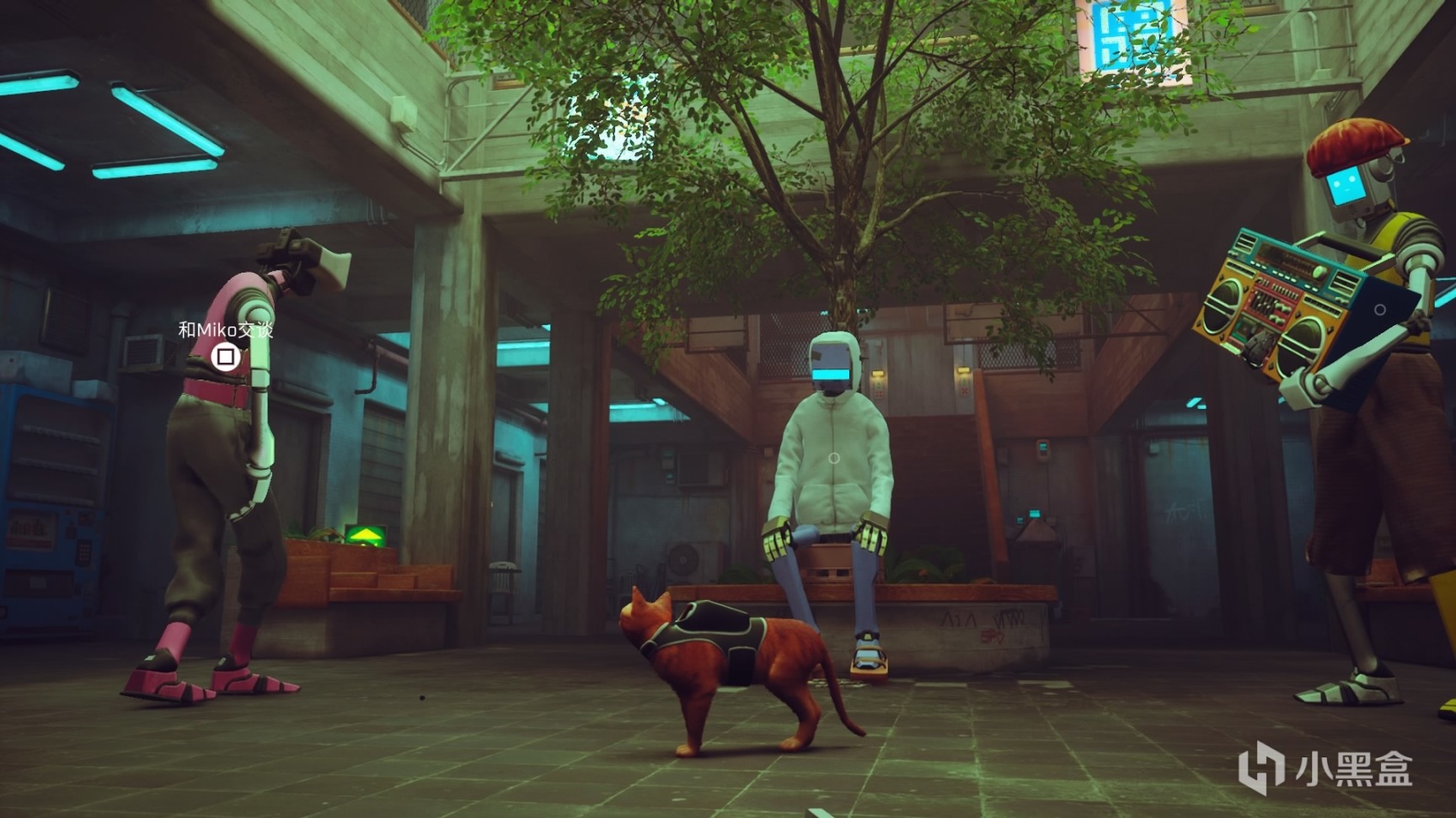 与2077的背景不同,Stray设定在科技发展后人类灭绝的时代。这就使得游戏的场景设计中虽有人类建筑得以保留,但整体非常有年代感。猫猫虽然渺小但并不脆弱,也没有沉重的反乌托邦内核,相对轻松的设定让厚重的“霓虹色”有了呼吸。