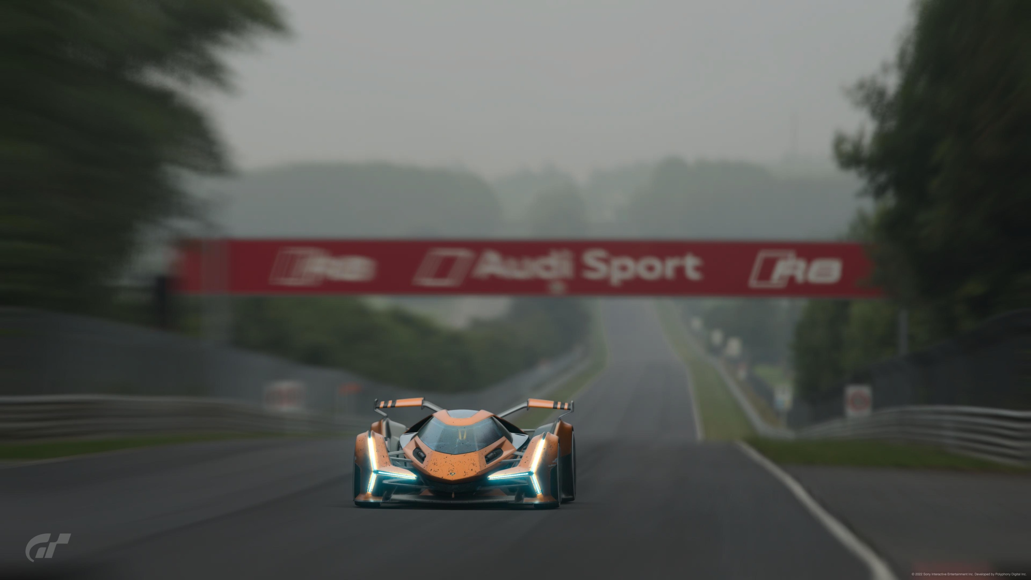 这张照片选自我在一场纽北赛道竞速的过程中,招牌的科幻VGT赛车配上传奇赛道“纽博格林北环”,在赛道末段这条大直道上飞驰,总令我心潮澎湃。