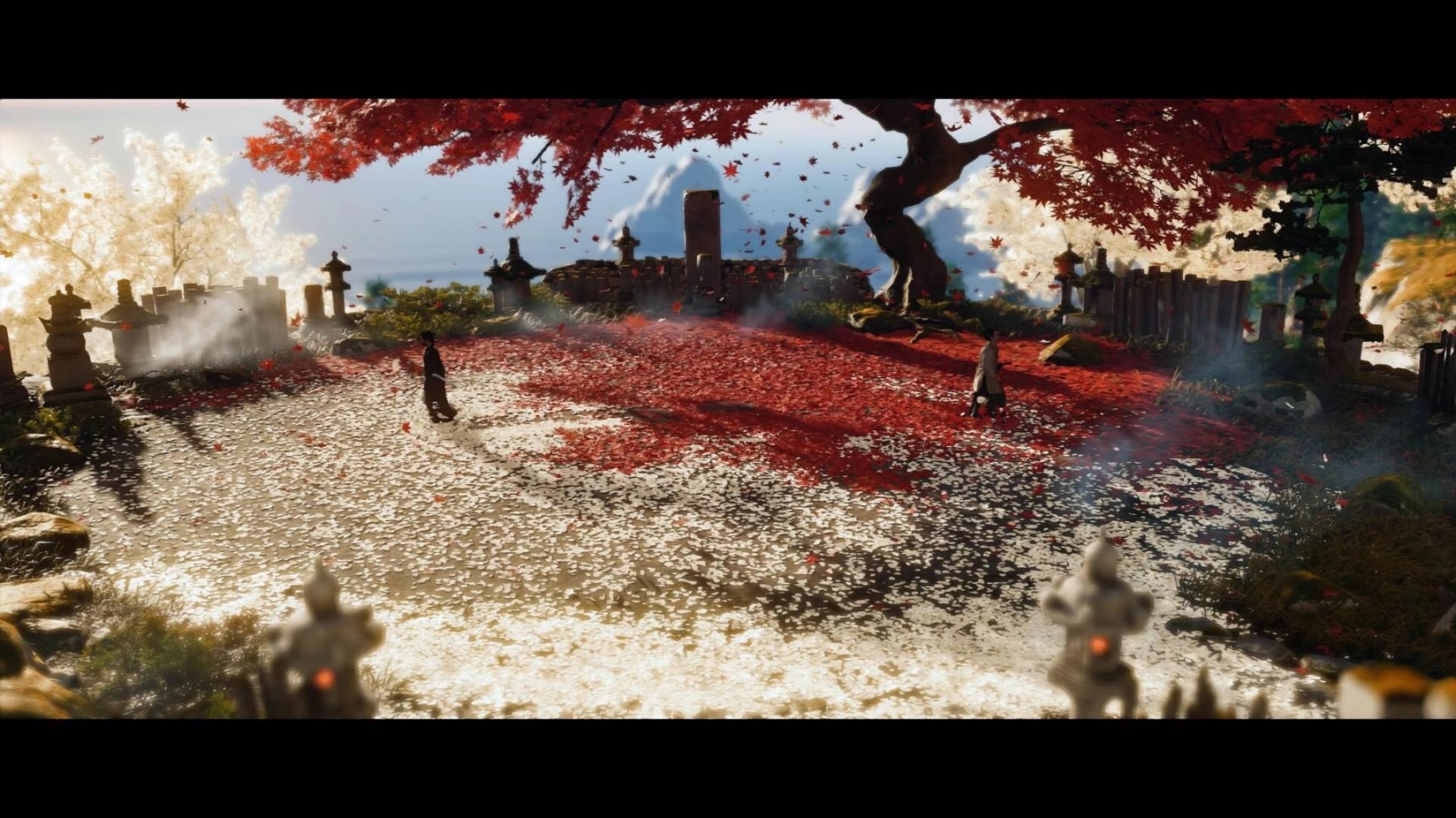 这张照片选自游戏后期的一场对决,“我”要与我的至亲之人战斗,在此之前我本以为击败外敌尘埃落定,可早早归隐山林之中,谁知还有此回。相聚时我便暗觉不妙,内心苦苦哀求希望不必走上生死两别动的道路,但正如照片中萧瑟秋风吹拂下道场中的两人,只得以背影相对,再回首便是死敌。刀光剑影之下,“我”哭了,而我也哭了。