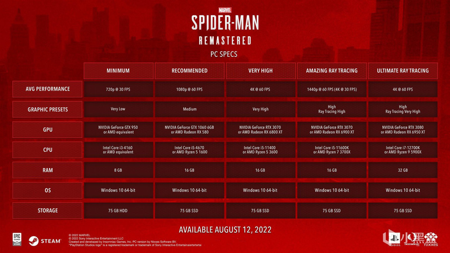 4K60帧终极光追配置:RTX 3080/i7-12700K/32G内存/75GB SSD硬盘空间