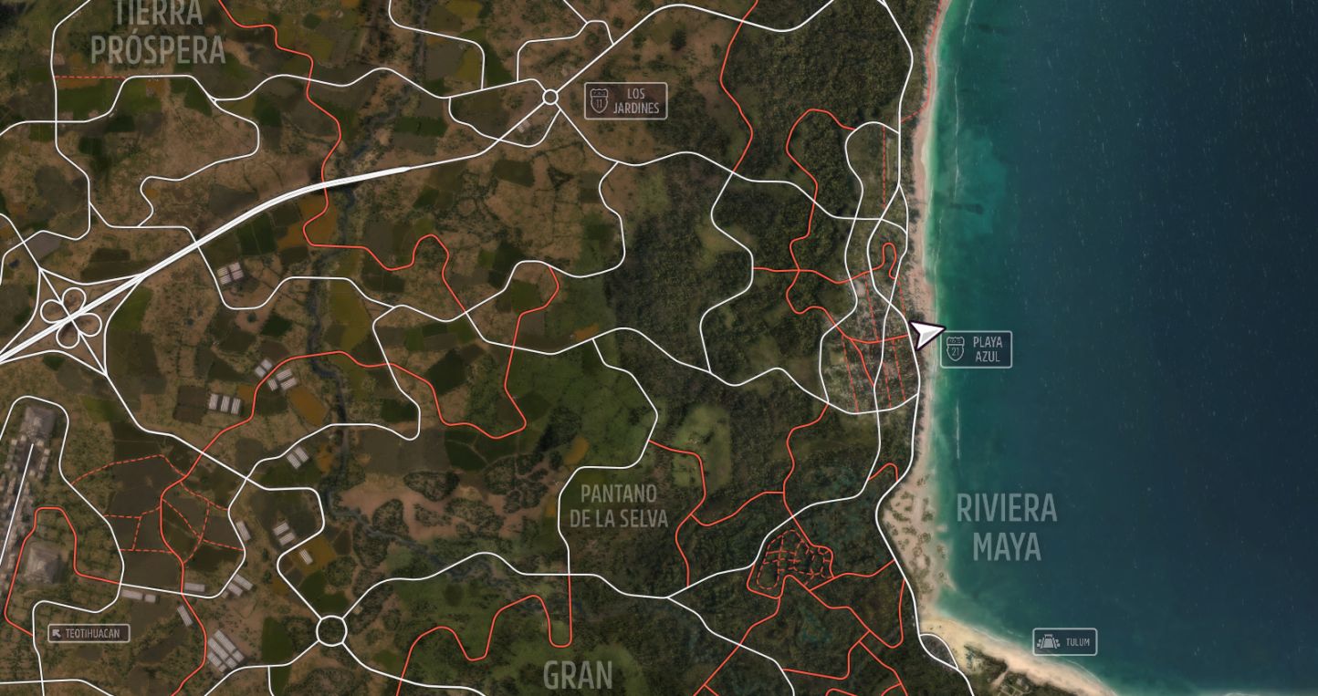 蓝色沙滩位置在左侧海岸,可参考上图