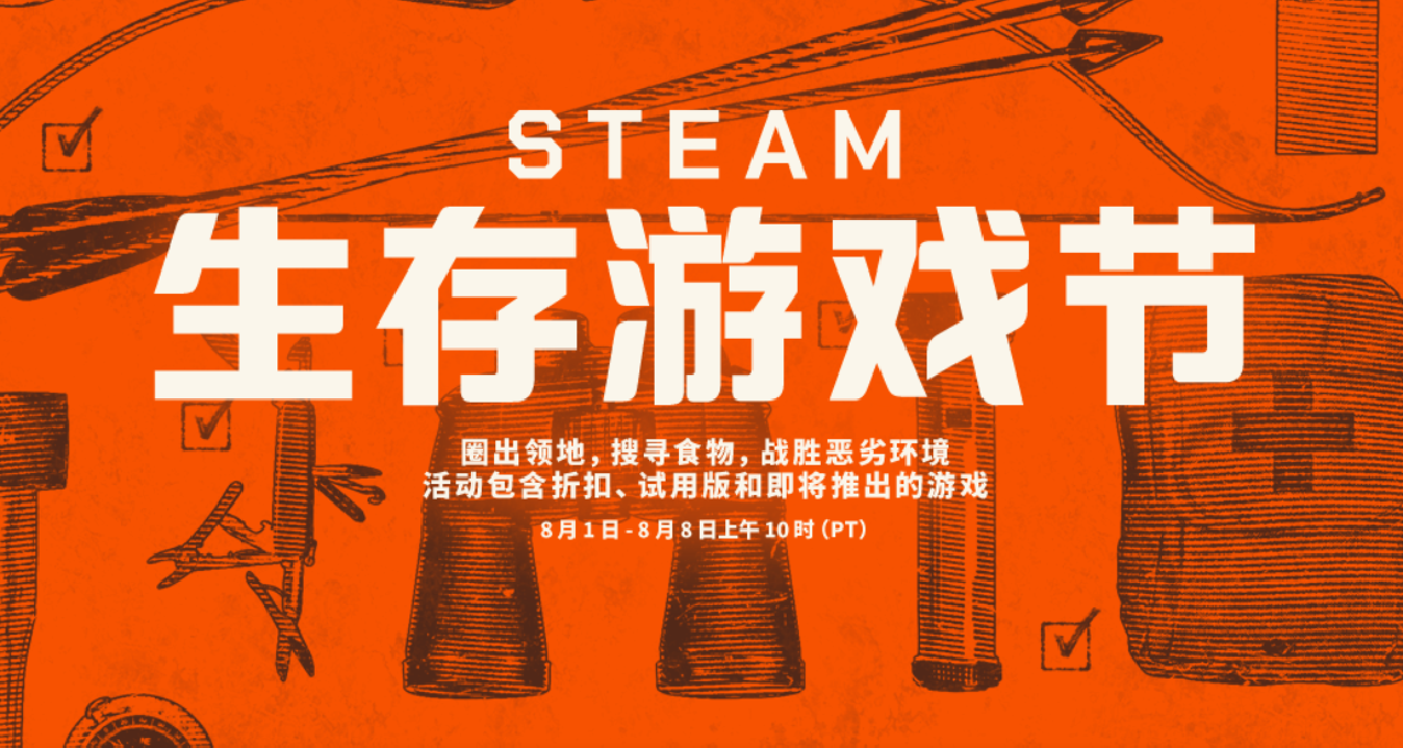 Steam现在花里胡哨的游戏节日真是越来越多了。圈出领地,搜寻食物,战胜恶劣环境!为期一周的Steam生存游戏节(太平洋时间8月1日——8月8日)正式开启啦(G胖又来收割钱包辣),所以今天为盒友们整理了本次生存类游戏的折扣信息,包含: