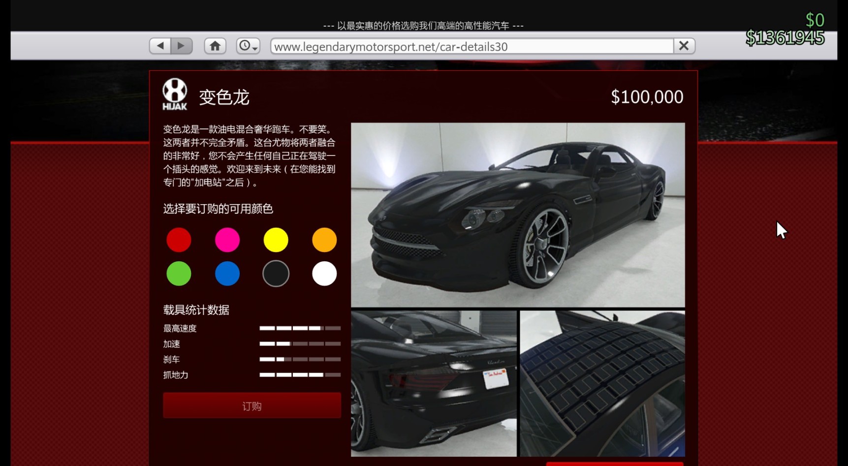 以上就是目前收集到的GTAOL中的电动车,望盒友指正与补充。