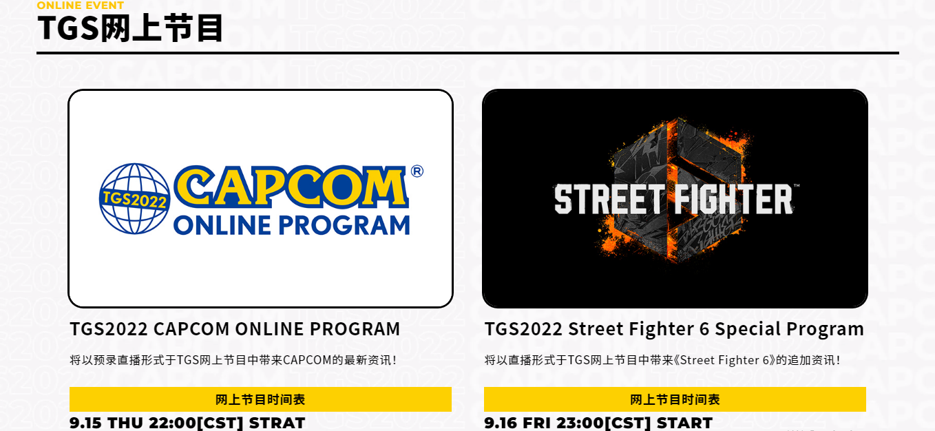 北京时间9月15日22点:作为TGS Online的一部分,官方预先录制的视频中获取所有最新的卡普空综合新闻!