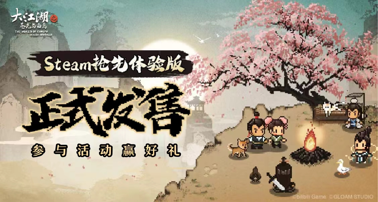 《大江湖之苍龙与白鸟》是一款怀旧像素风武侠RPG,一打开游戏界面,盒娘就被充满复古氛围感的像素画风深深吸引了。8月16日,《大江湖之苍龙与白鸟》正式在Steam平台发售抢先体验版。