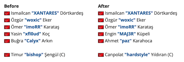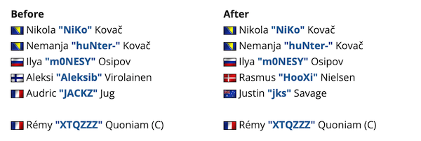 在2021年Natus Vincere的阴影下,G2今年年初对队伍做了非常大的调整。但是在8个月之后,在他们的奖杯陈列柜依然空荡荡的情况下,G2选择“超级加倍”,再次进行了人员变动,并最终招募了jks和HooXi。时间将会证明这样的选择是否会和他们宣传片中预期的那样能,在下半年赢得一场冠军。特别值得关注的是这也将是HooXi第一次执掌讲英语的队伍,并且jks也已经有很长一段时间没有参加比赛了(除了在IEM卡托维兹上作为FaZe的替补上场,还击败了G2拿了冠军)。