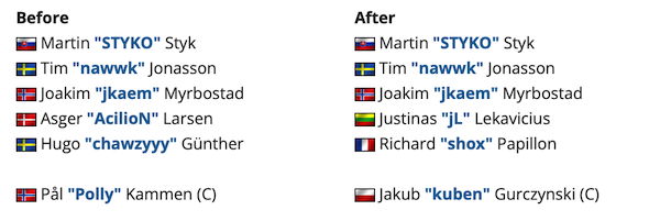 在2022年初队伍引进了STYKO, nawwk和jkaem并宣布新阵容时,这支队伍看起来是未来可期的,可惜最终结果并不尽如人意。俱乐部为了继续提升实力,如今选择了让年轻小将jL和法国功勋老兵shox加入。这样一连串的签约会是有价值的投资吗?在结合队伍内选手们的资历,我们还是可以对他们保持一定的期待的。
