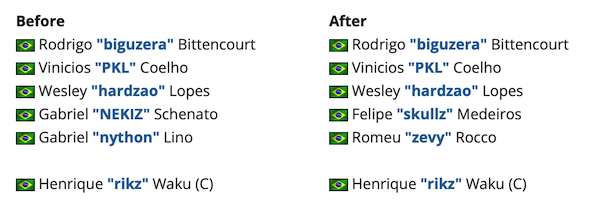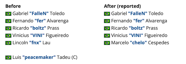 Imperial在PGL安特卫普Major上打败C9拿到了第9-11名的成绩,似乎证明了“最后一舞”的可行性。但是这样的好成绩再也没有出现在这个巴西队伍身上了。最终fnx和peacemaket与俱乐部分道扬镳。据报道,能力强劲的chelo会是他们的首选目标,而24岁的chelo此前一直都是MIBR的中坚力量。这笔签约是否足以让Imperial重新回到第14名的成绩?他们是否会因为核心选手位置冲突导致队伍成绩继续下滑?这一切都是未知的。
