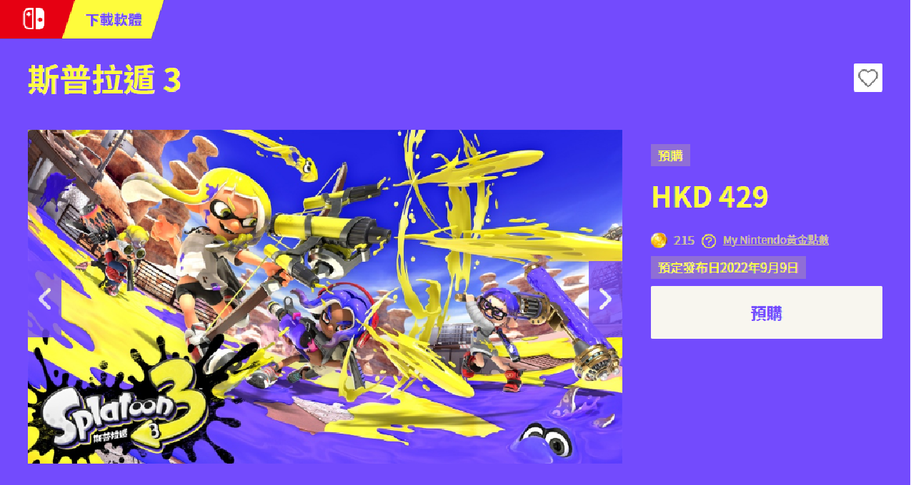 《喷射战士3》游戏将于9月9日正式发售,现已开启预购,港服售价429港币,支持任亏券(推荐任亏券),支持简体中文。
