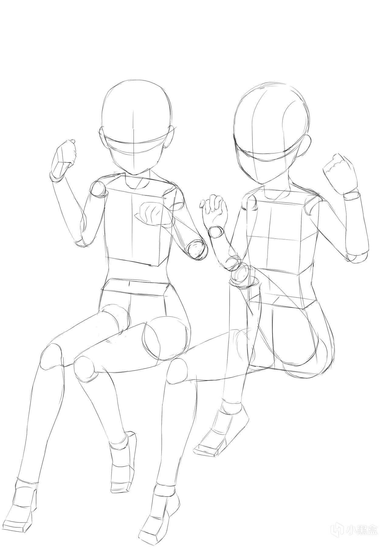 绘画步骤,第一步,首先要确立好人体结构大致动态以及透视关系,这步骤是人体结构的毛胚阶段。