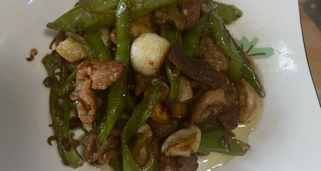 一道好吃的辣椒炒肉就做好啦!开饭!