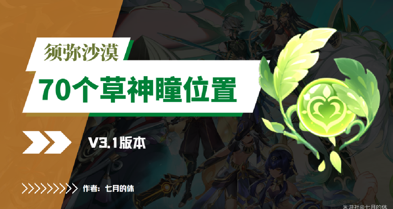 hello~大家好,这里是“七休”呀,版本开2天了,大家须弥都探索得怎么样了呢?本期带来的是3.1版本须弥沙漠70个草神瞳点位全收集路线,含实景图!目前须弥沙漠+雨林共180个草神瞳!