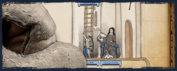 对局采用回合制。每回合(游戏中称为“章节”),你可以选择自己笔下的一个角色,令其移动或执行行动。当角色停留在绿色范围内时,则可以接着执行一个行动,可选行动包括攻击、推搡、祷告等,视单位类型有所不同;如果停留在黄色区域,则不能继续行动,只能结束这一回合。双方轮流进行回合,直到都没有可以行动的角色为止,进入下一轮。