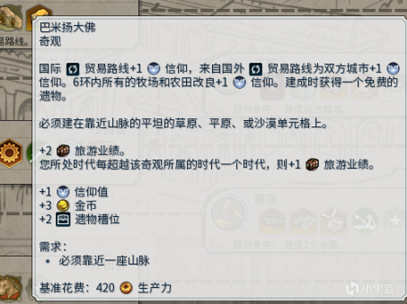 - 它带来的信仰,可以让你早期万神殿很有可能拿掉宗教移民