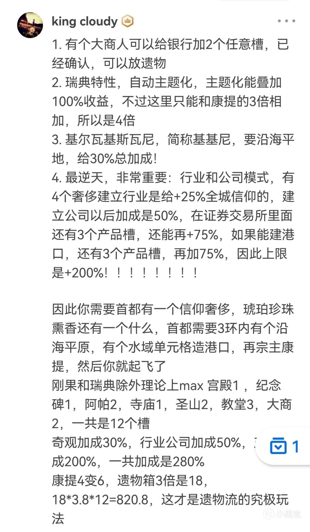 一个遗物能带来的基础收益是:4信仰,4旅游业绩