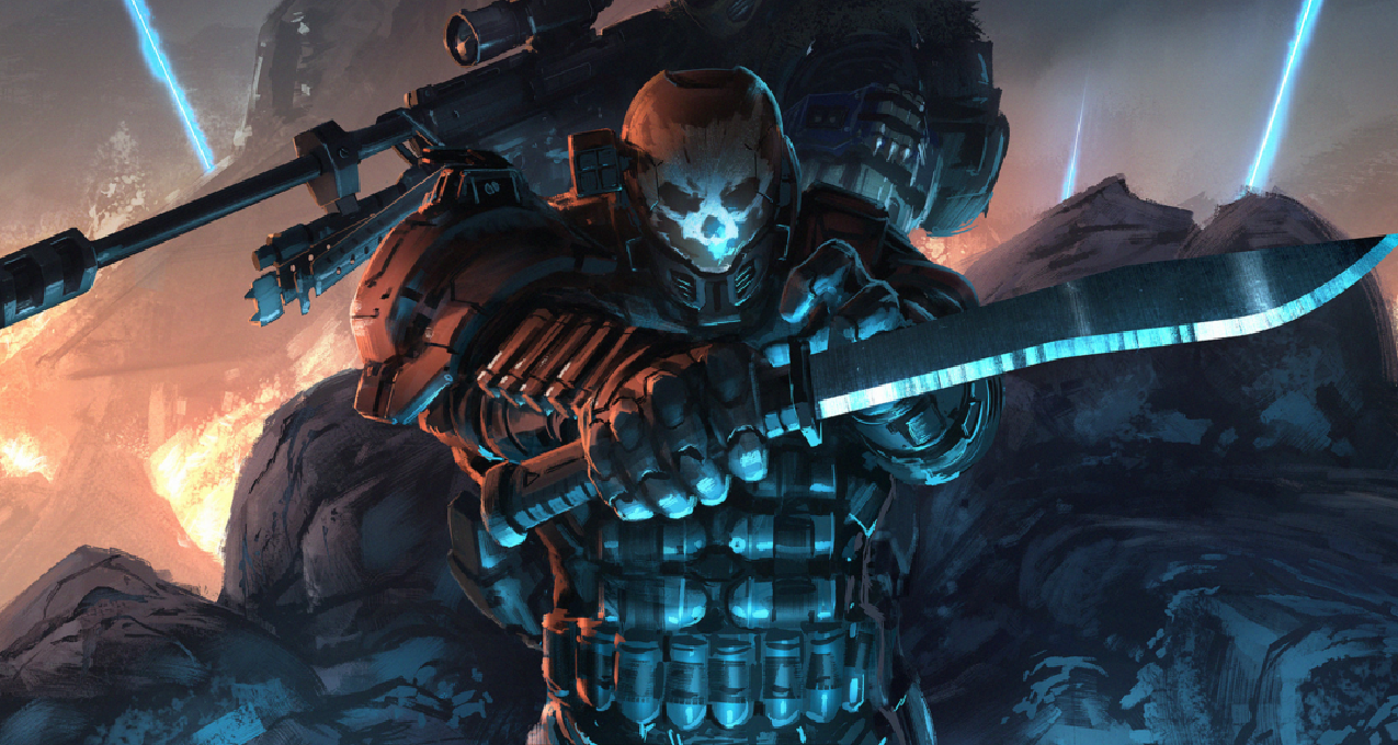 他的护甲包括突击/工兵胸甲、突击/破坏者手腕附件、安保右肩甲、操作员左肩甲、战术/软壳实用工具和FJ/PARA护膝。护甲中最独特的部分是他的头盔,一个带有HUL附件的EVA头盔,面罩上面有一个他自己刻上去的骷髅图案。图案由数百条划痕汇成,每一条都代表他杀死的一个星盟成员。