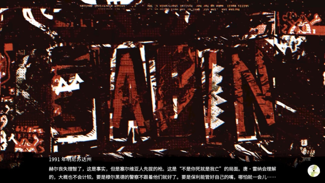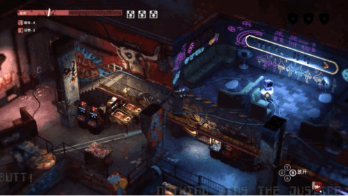 在游戏开始前,玩家可以在短片中对这个世界有进一步的了解。游戏画面阴暗且富有颗粒质感,大胆鲜明的颜色色调、高度抽象的涂鸦文字,展现出类似于街头文化一样狂放不羁、不受控制的行为艺术。夜幕降临,那些隐秘于黑暗角落的“清扫者”便开始了“营业”。在高度发展、光鲜亮丽的城市背后,“盗贼、犯罪…”新闻在24小时轮番播报着今天发生的重大事件……违法犯罪活动却在夜色中慢慢发酵着,这预示黑暗社会的浑浊不堪的另一面。开场CG整体给人一种混沌浑浊的感觉!