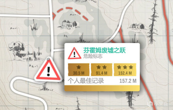 危险标志大家用经典肌肉车可以选择我给大家推荐的(1965款野马GT coupe)也可以选自己喜欢的,可以先开到跳板之后倒车,给车留足冲刺的空间