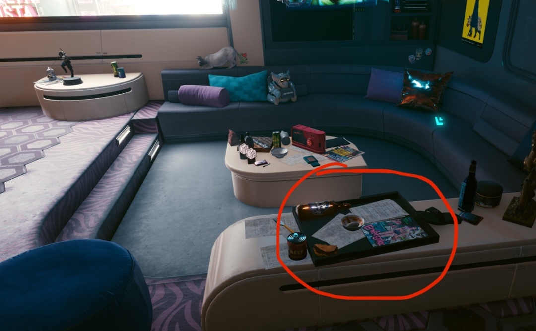 ③:《偷货》不要急着走出女黑客T-BUG用生命打开的门,因为还有很多要拿的东西—屋顶飞车里的不朽武器-觉、一楼床台的不朽武器-金刚、二楼楼梯门边赖宣的衣物、门口躺倒的树洞口90天才可孵化的蜥蜴蛋(到家第一时间放在沙发边的盘子里孵化哦)、荒坂三郎尸体上的狗牌。